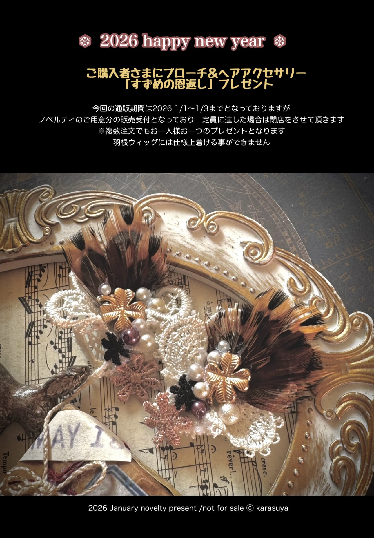 年始突発企画で、2026 1/1 21:00〜1/3 23:59の通販をご利用頂いた皆様にノベルティをプレゼントさせて頂きます。