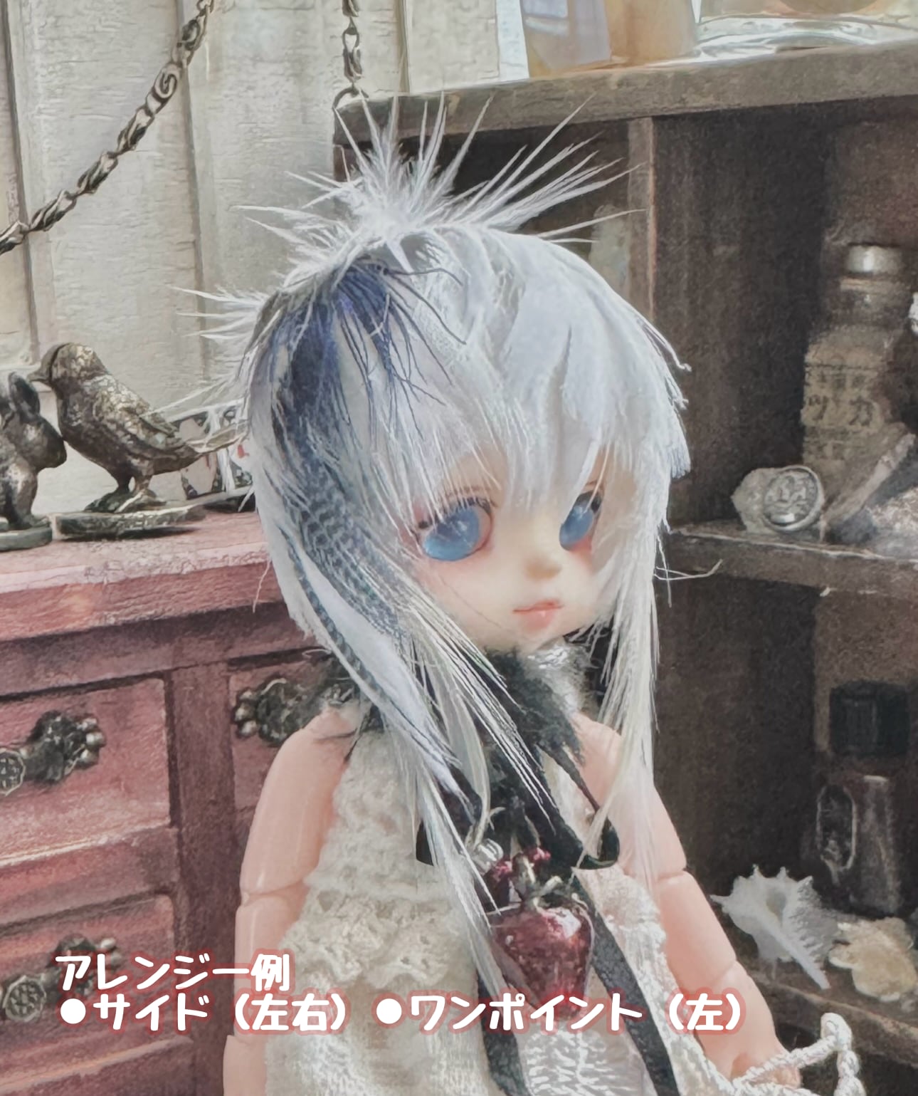 ご希望の色の指定が無ければウィッグに馴染みの良い色や柄の羽根をお任せで作成させて頂きます。