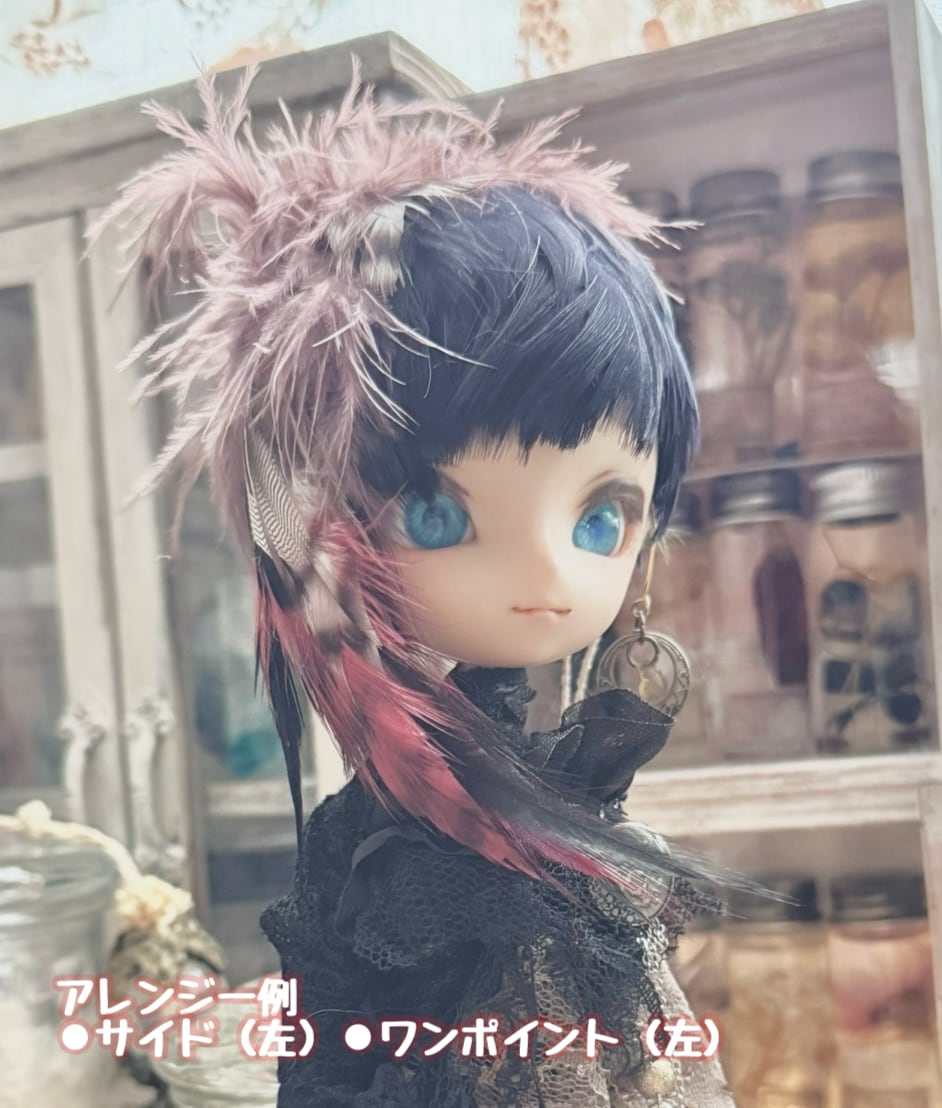 ご希望の色の指定が無ければウィッグに馴染みの良い色や柄の羽根をお任せで作成させて頂きます。